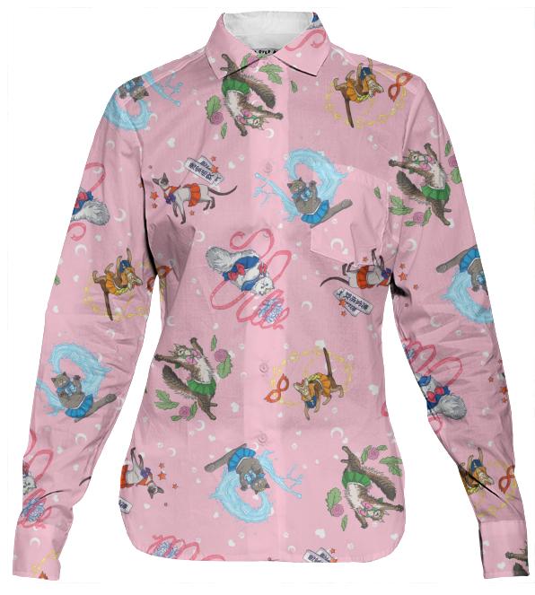 Basic womens button down with spread shirt collar front left breast pocket and side darts for a slim fit.