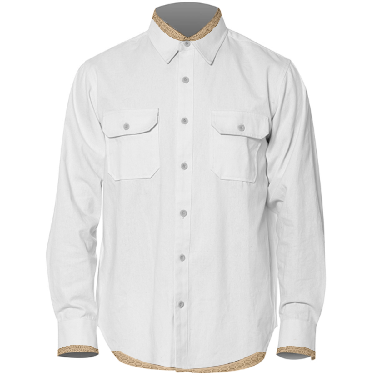 Button up workshirt with front welt flap pockets. Made with midweight cotton this button up has a more rugged look than the classic Mens button up.