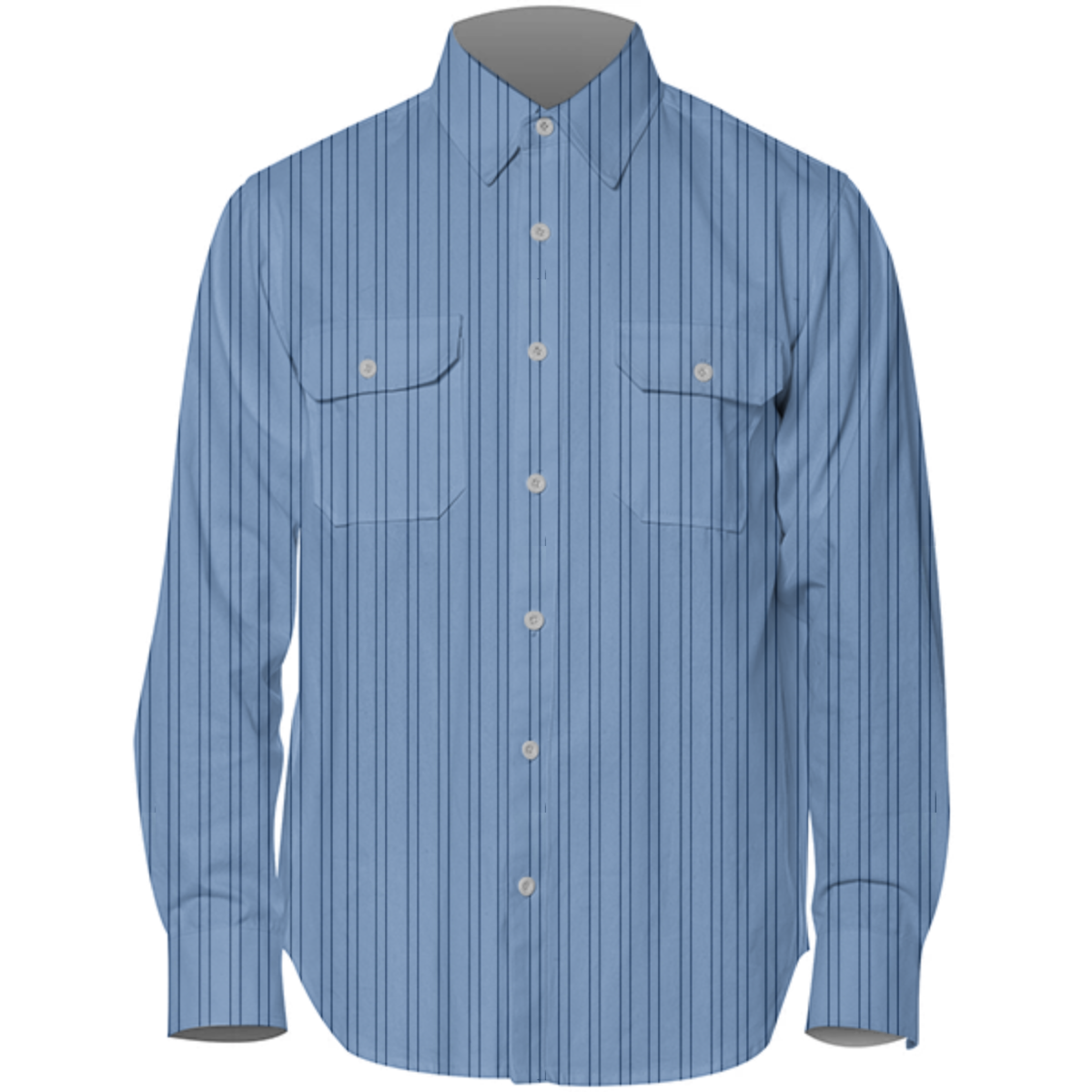 Button up workshirt with front welt flap pockets. Made with midweight cotton this button up has a more rugged look than the classic Mens button up.