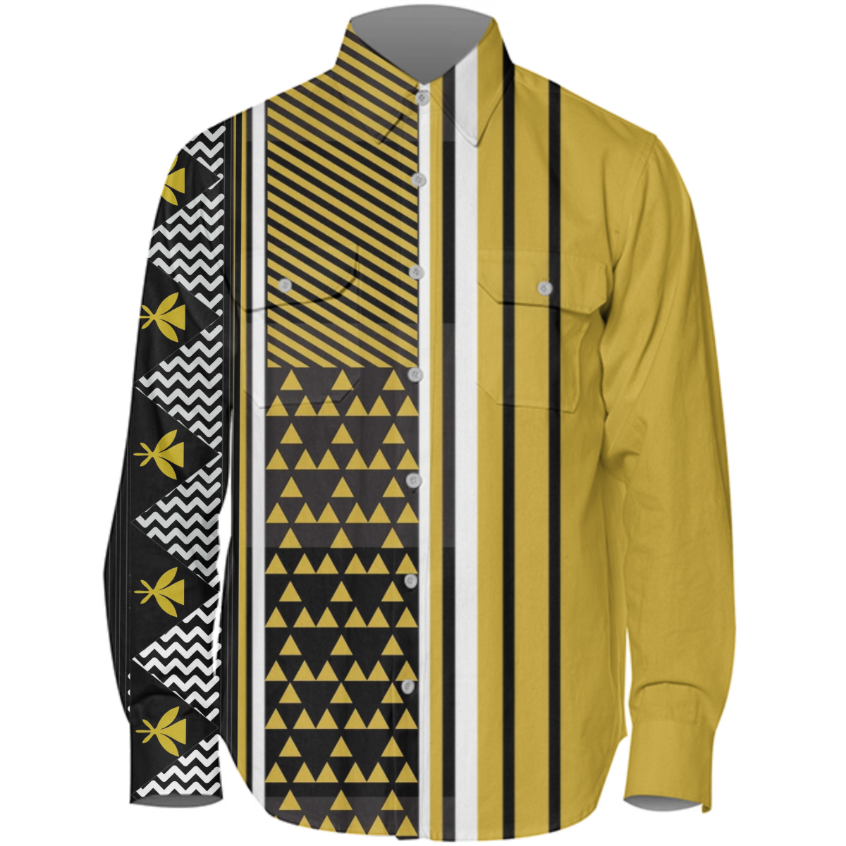 The uploaded file will be printed on the entire front and be mirrored on the back. Because of our cut and sew process some print elements on pockets seams and sleeves might not match up. For best results please upload a PNG or JPG with RGB color profile and dimensions of at least 35 inches width by 20 inches length. DPI can be as low as 72.