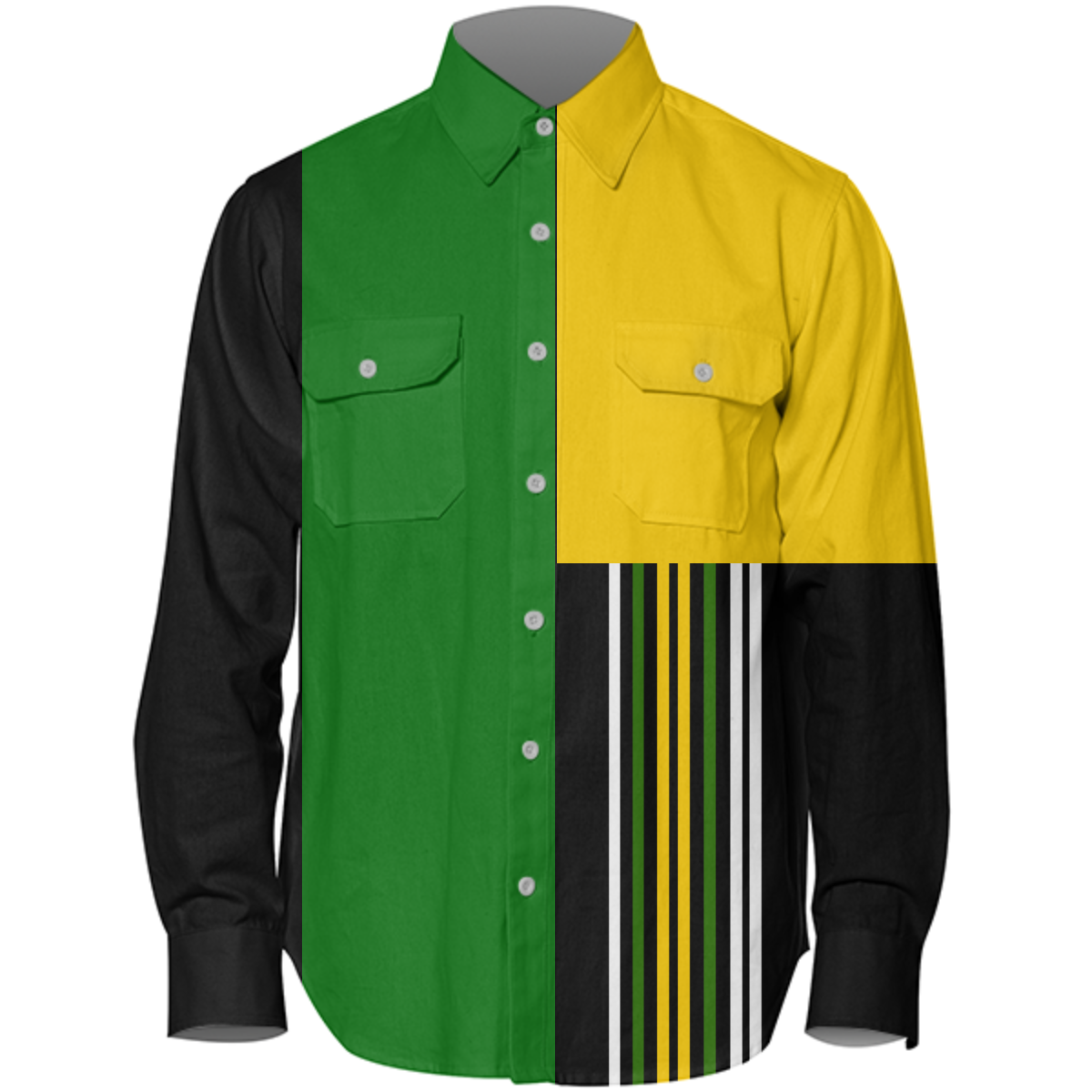 The uploaded file will be printed on the entire front and be mirrored on the back. Because of our cut and sew process some print elements on pockets seams and sleeves might not match up. For best results please upload a PNG or JPG with RGB color profile and dimensions of at least 35 inches width by 20 inches length. DPI can be as low as 72.