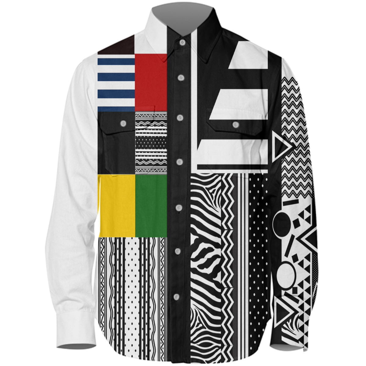 The uploaded file will be printed on the entire front and be mirrored on the back. Because of our cut and sew process some print elements on pockets seams and sleeves might not match up. For best results please upload a PNG or JPG with RGB color profile and dimensions of at least 35 inches width by 20 inches length. DPI can be as low as 72.