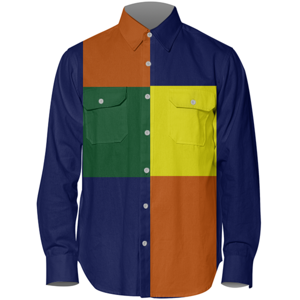 The uploaded file will be printed on the entire front and be mirrored on the back. Because of our cut and sew process some print elements on pockets seams and sleeves might not match up. For best results please upload a PNG or JPG with RGB color profile and dimensions of at least 35 inches width by 20 inches length. DPI can be as low as 72.