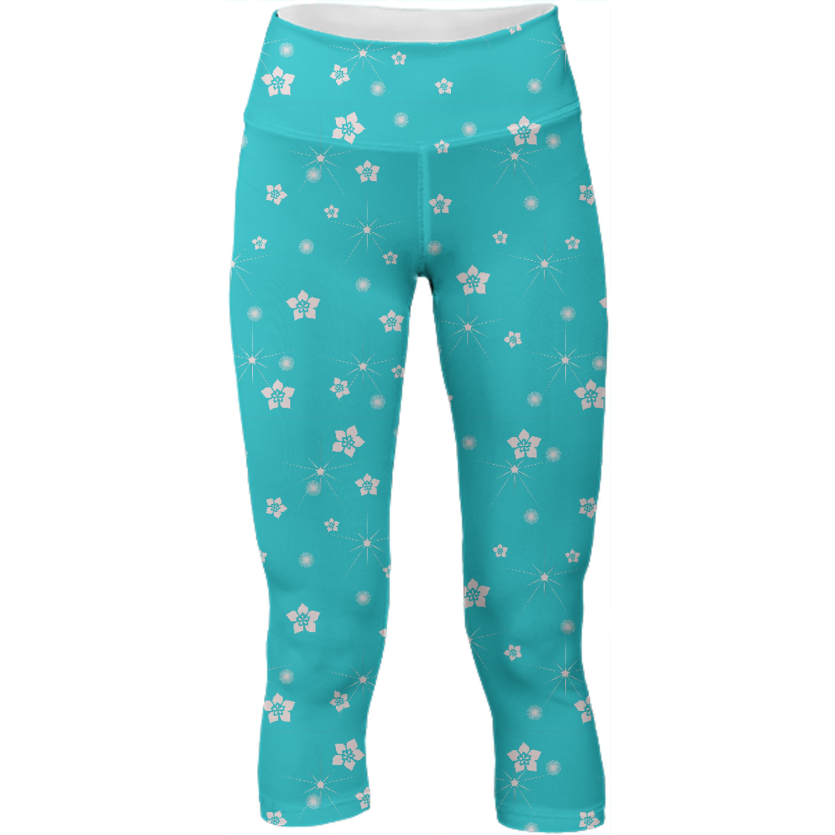 Mid calf length stretch yoga pants with an extra tall waistband for comfort and flexibility during workout.