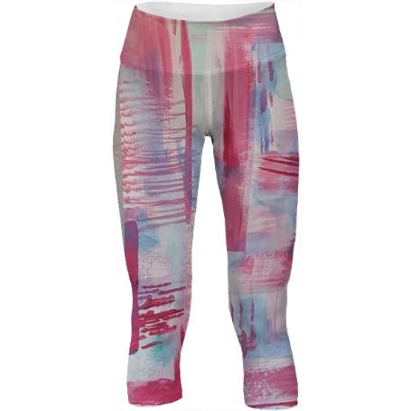 Mid calf length stretch yoga pants with an extra tall waistband for comfort and flexibility during workout.