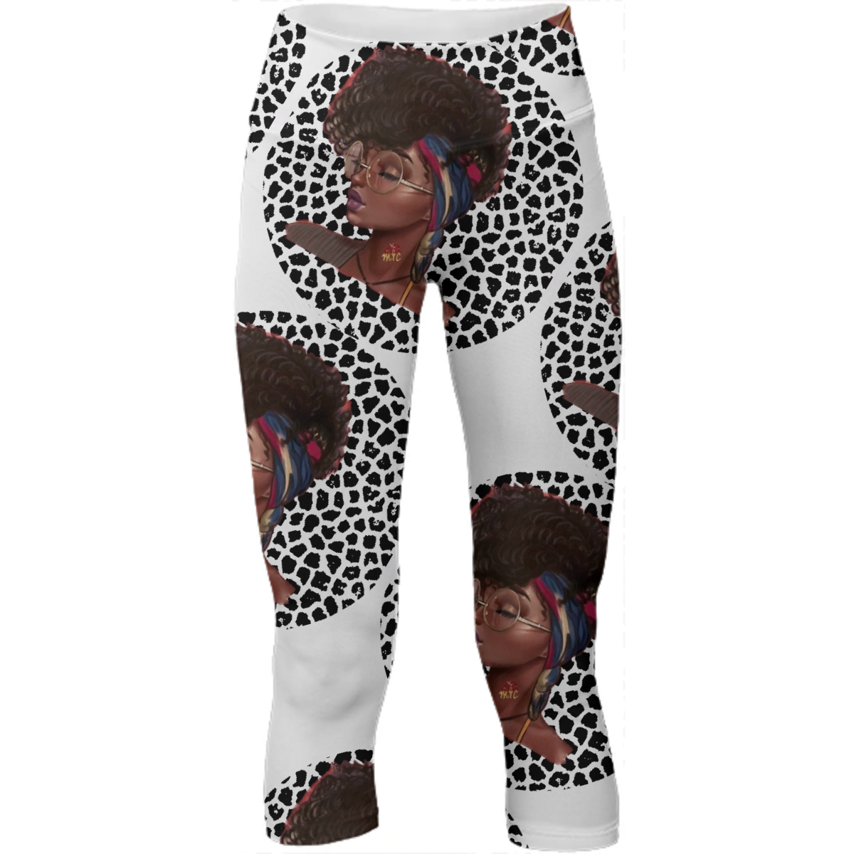 Mid calf length stretch yoga pants with an extra tall waistband for comfort and flexibility during workout.