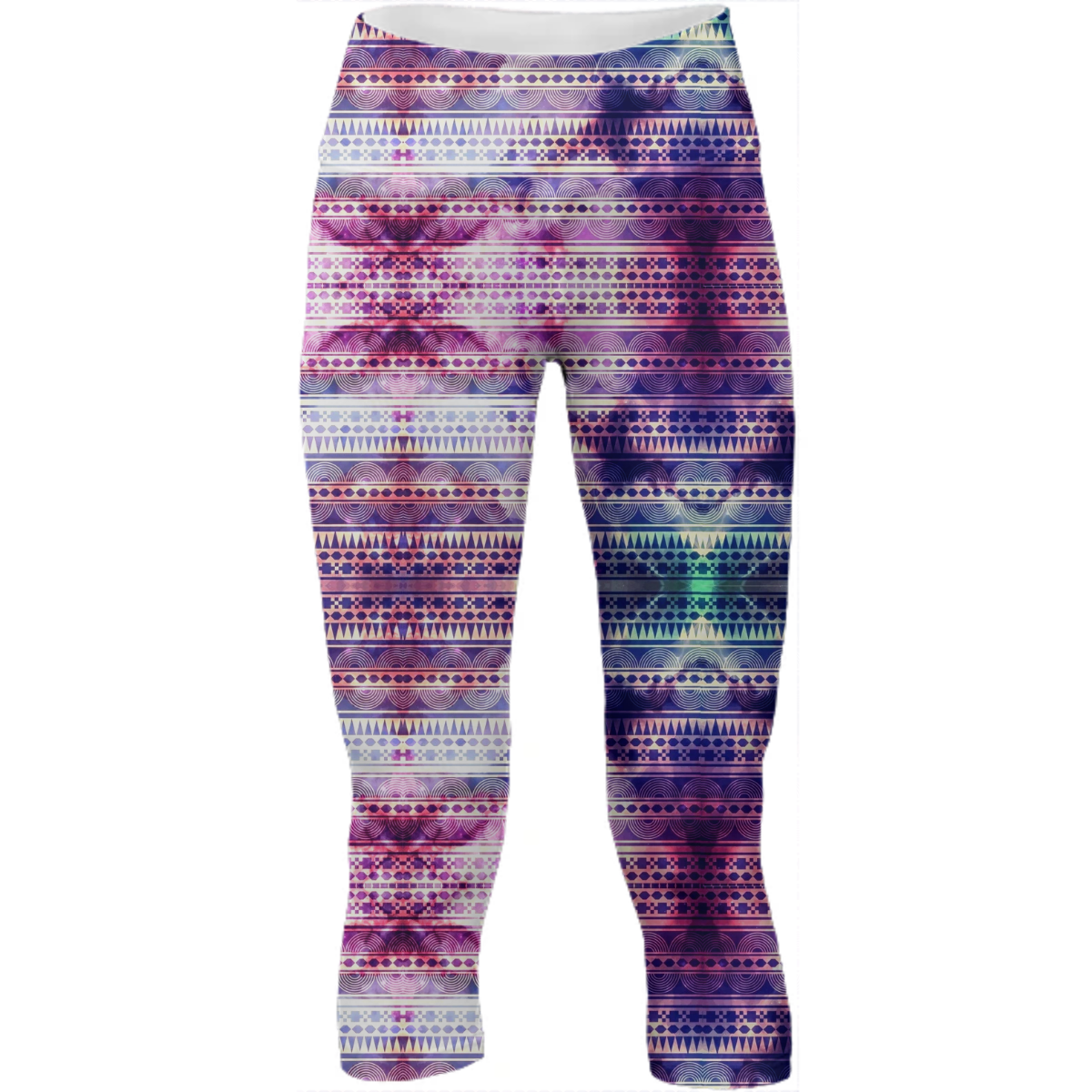 Mid calf length stretch yoga pants with an extra tall waistband for comfort and flexibility during workout.