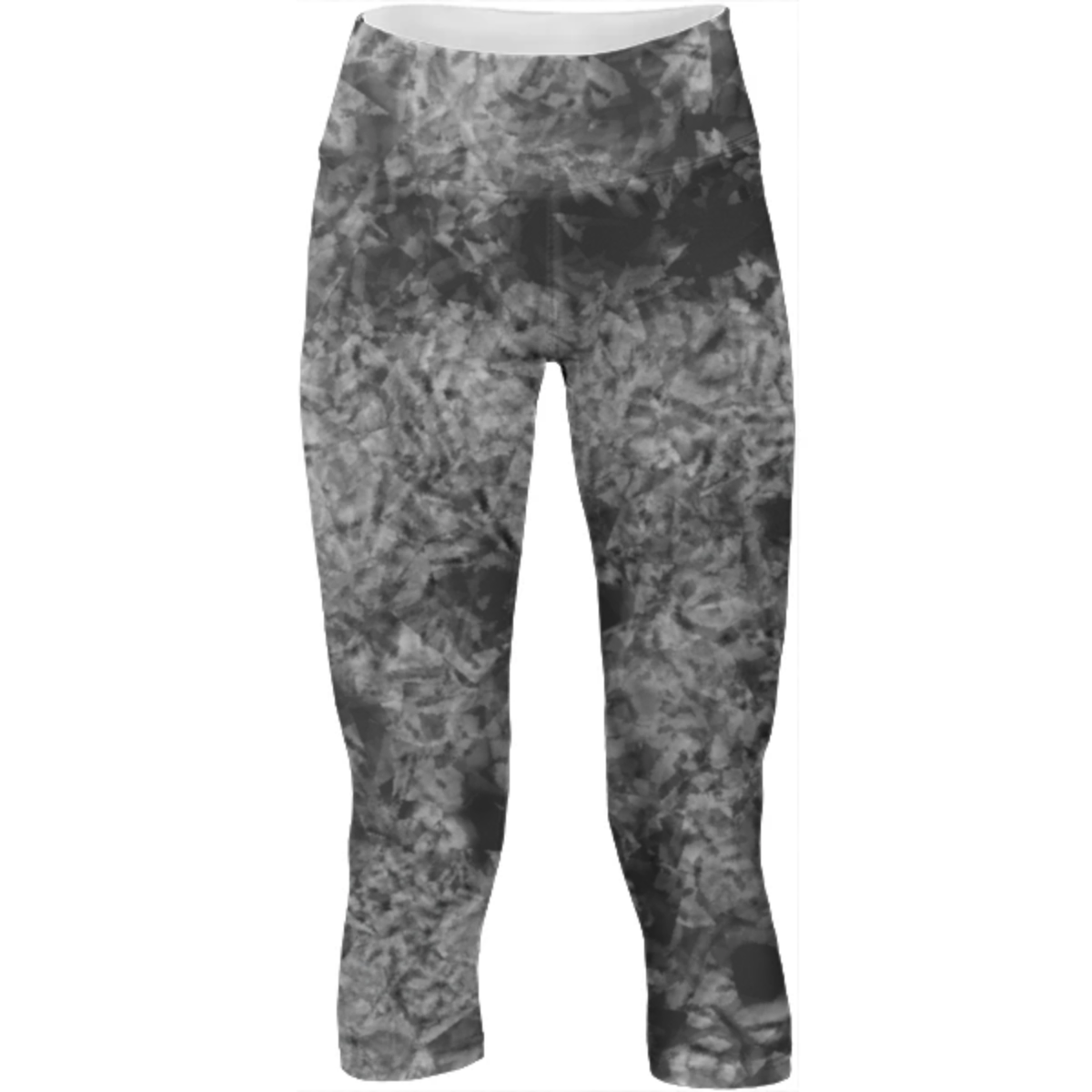 Mid calf length stretch yoga pants with an extra tall waistband for comfort and flexibility during workout.