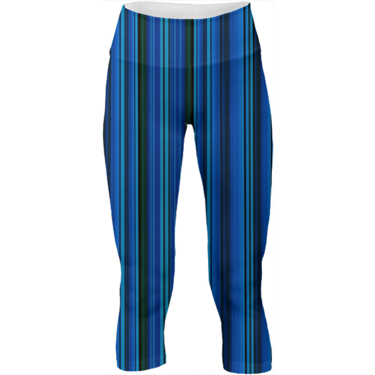 Mid calf length stretch yoga pants with an extra tall waistband for comfort and flexibility during workout.