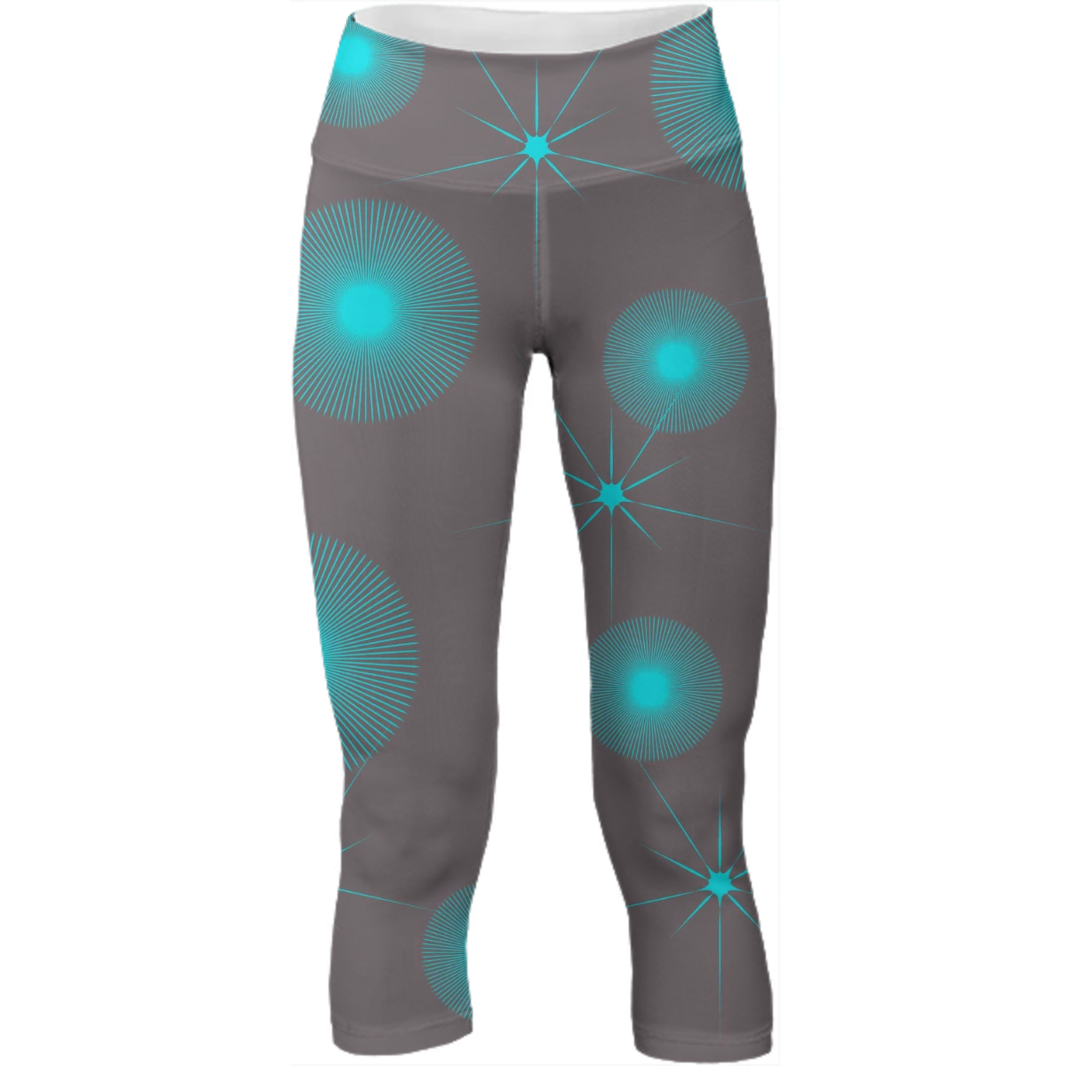Mid calf length stretch yoga pants with an extra tall waistband for comfort and flexibility during workout.
