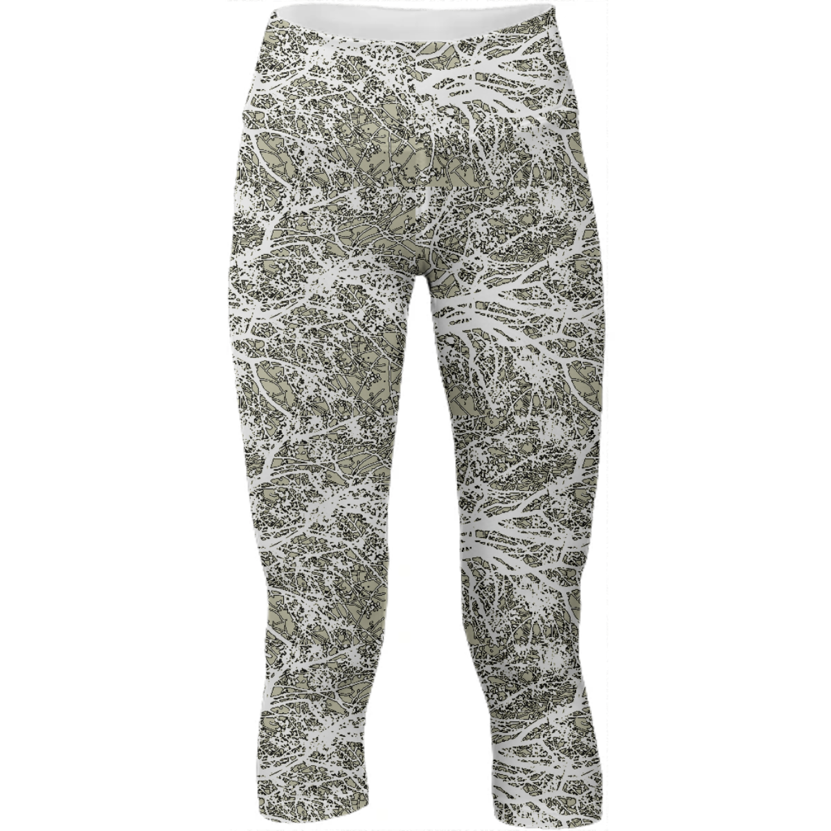 Mid calf length stretch yoga pants with an extra tall waistband for comfort and flexibility during workout.