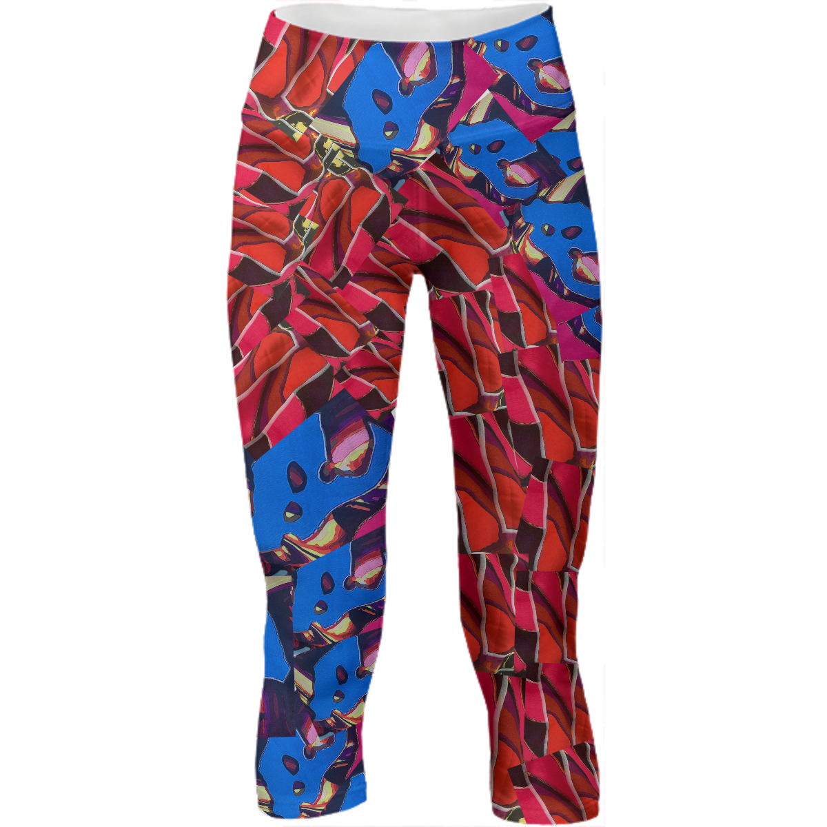 Mid calf length stretch yoga pants with an extra tall waistband for comfort and flexibility during workout.