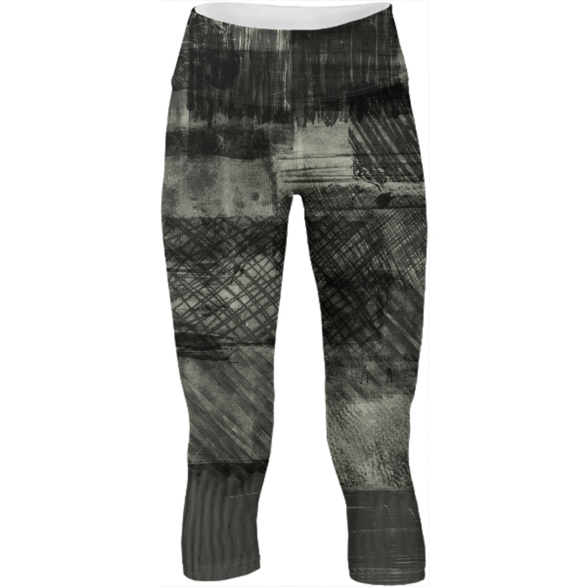 Mid calf length stretch yoga pants with an extra tall waistband for comfort and flexibility during workout.