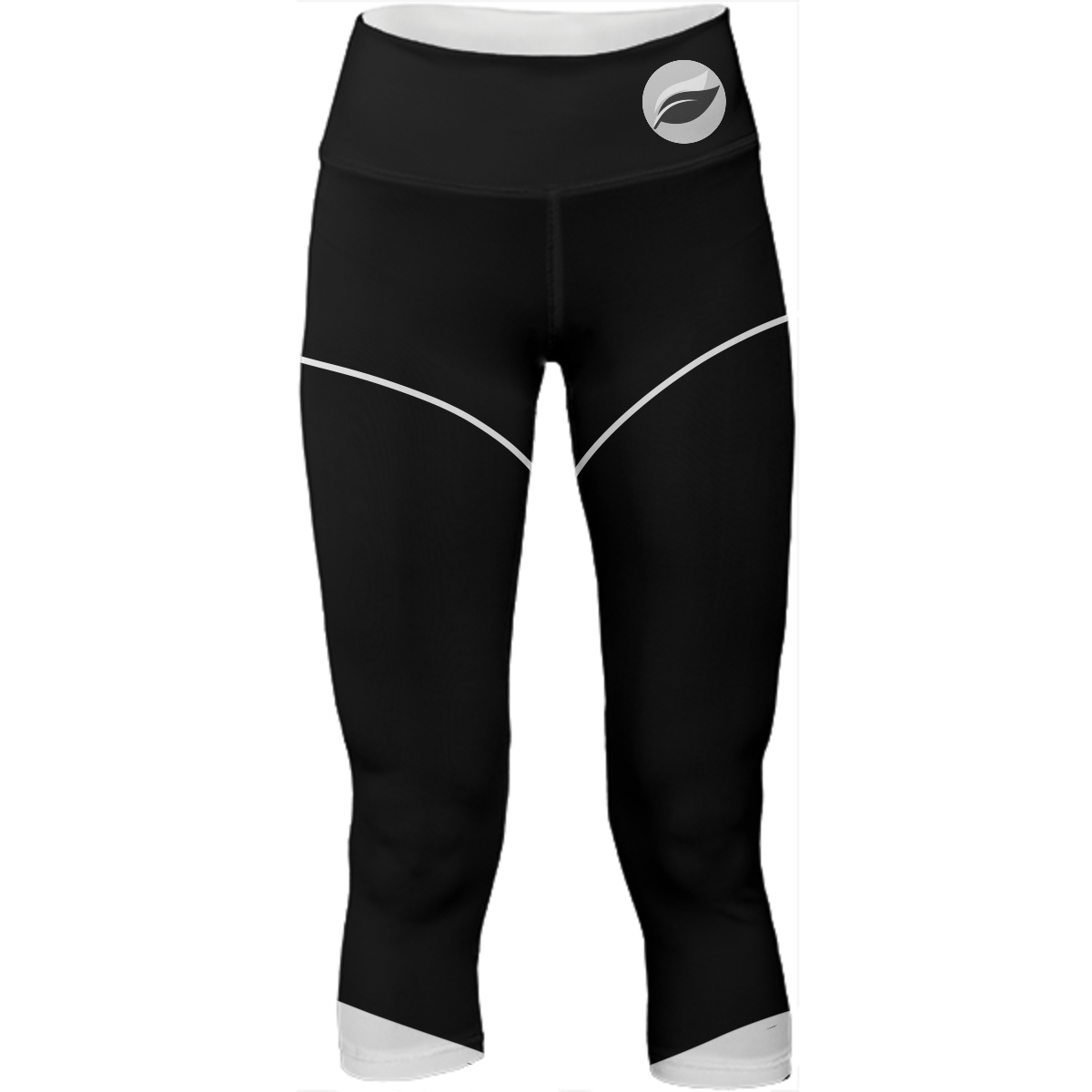 Mid calf length stretch yoga pants with an extra tall waistband for comfort and flexibility during workout.