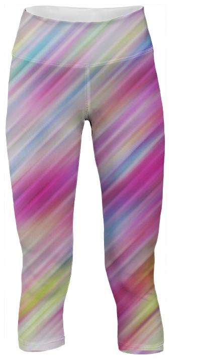 Mid calf length stretch yoga pants with an extra tall waistband for comfort and flexibility during workout.