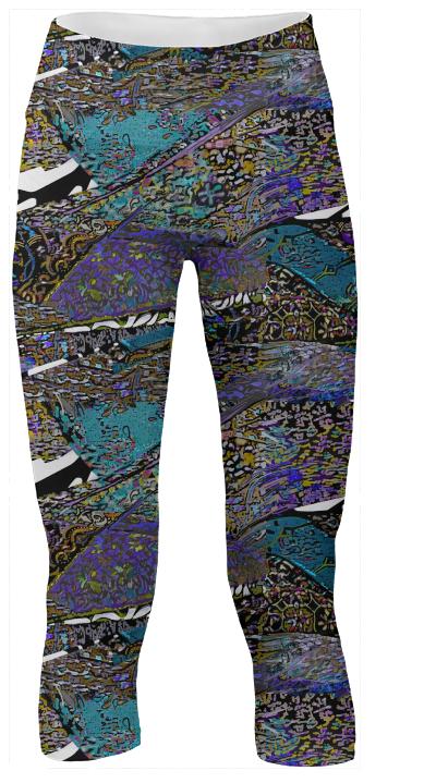 Mid calf length stretch yoga pants with an extra tall waistband for comfort and flexibility during workout.