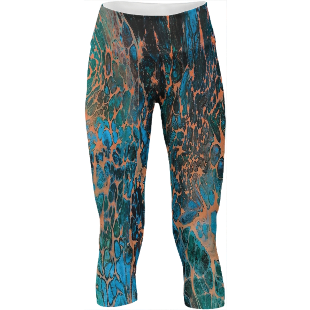 Mid calf length stretch yoga pants with an extra tall waistband for comfort and flexibility during workout.