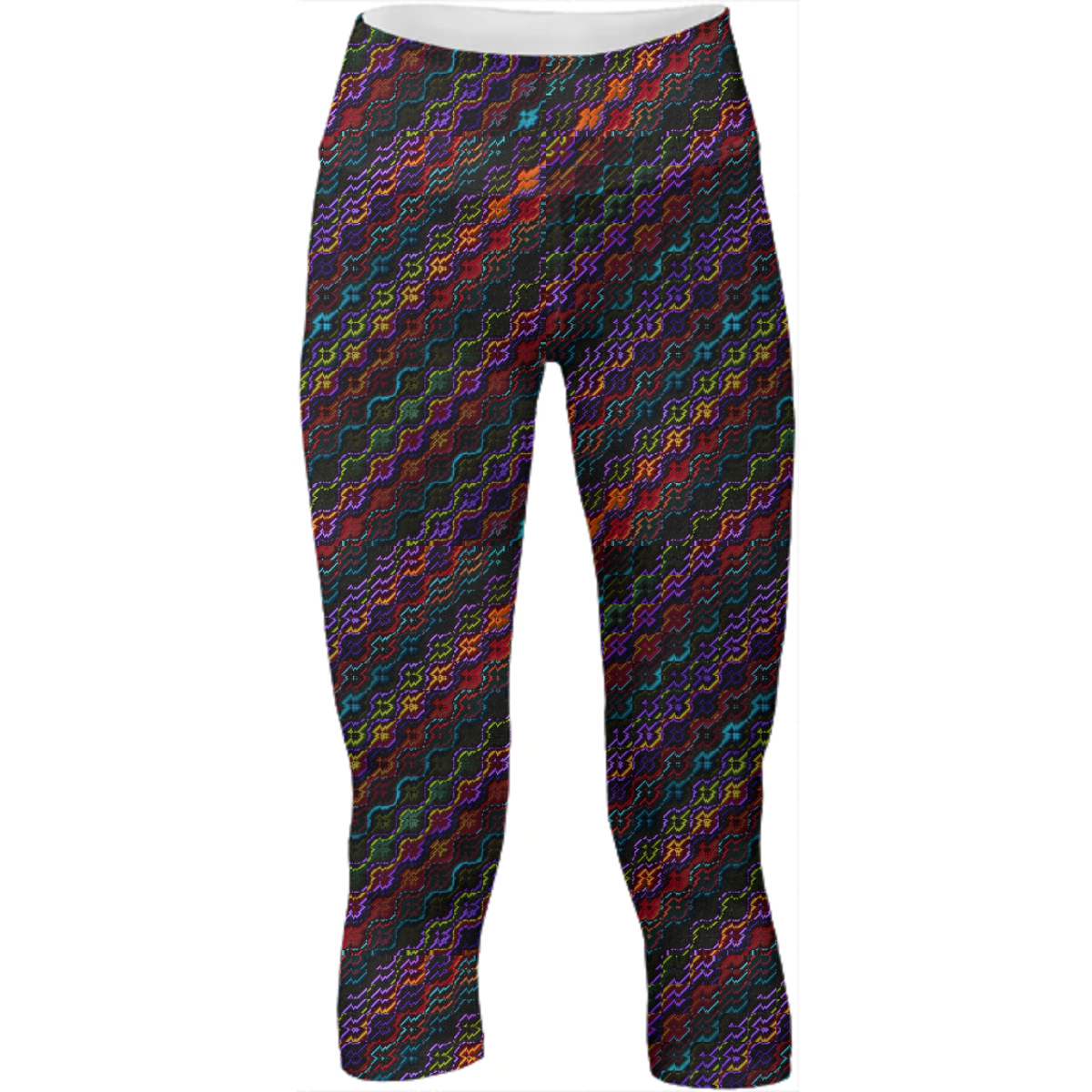 Mid calf length stretch yoga pants with an extra tall waistband for comfort and flexibility during workout.