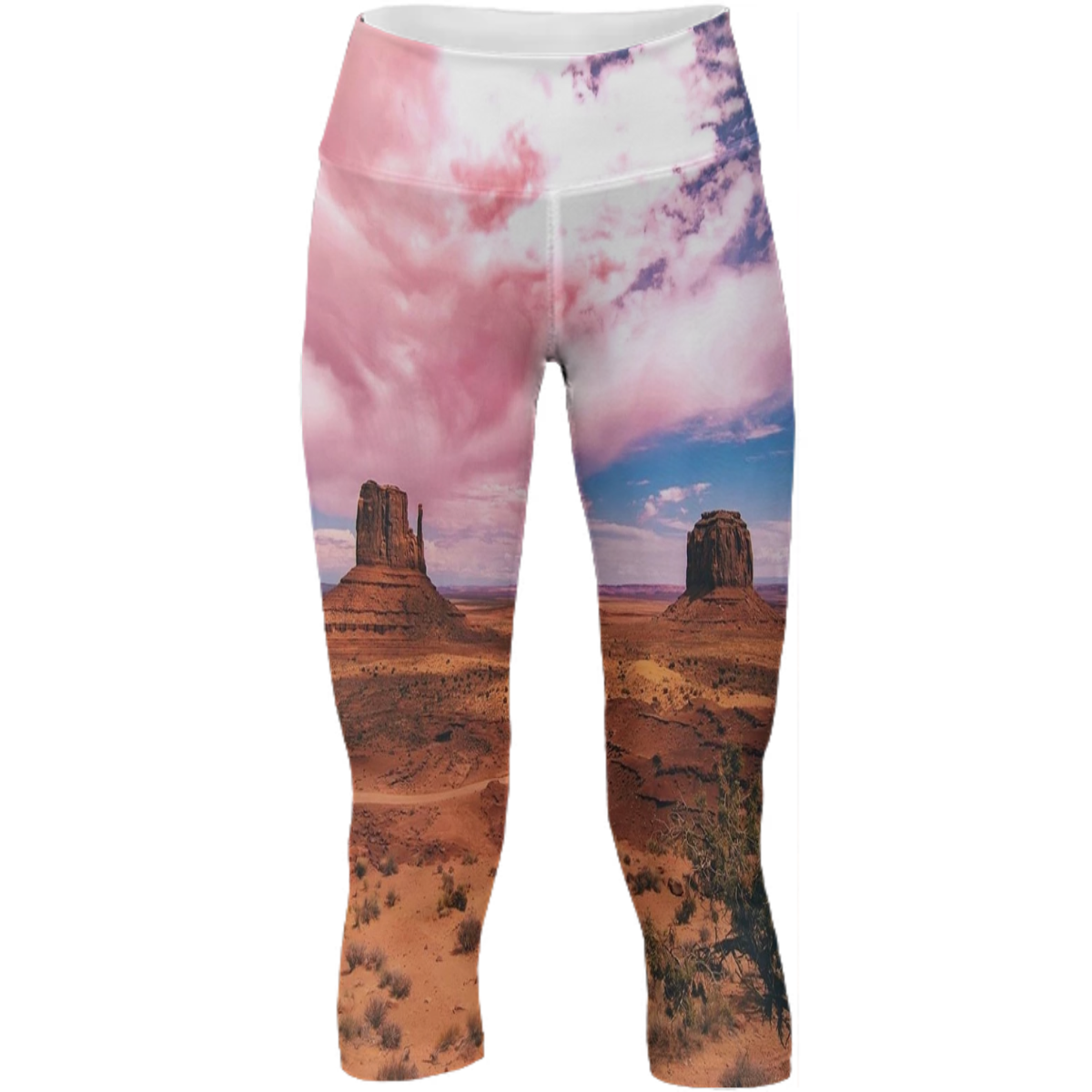 Mid calf length stretch yoga pants with an extra tall waistband for comfort and flexibility during workout.