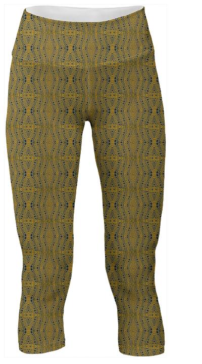 Mid calf length stretch yoga pants with an extra tall waistband for comfort and flexibility during workout.