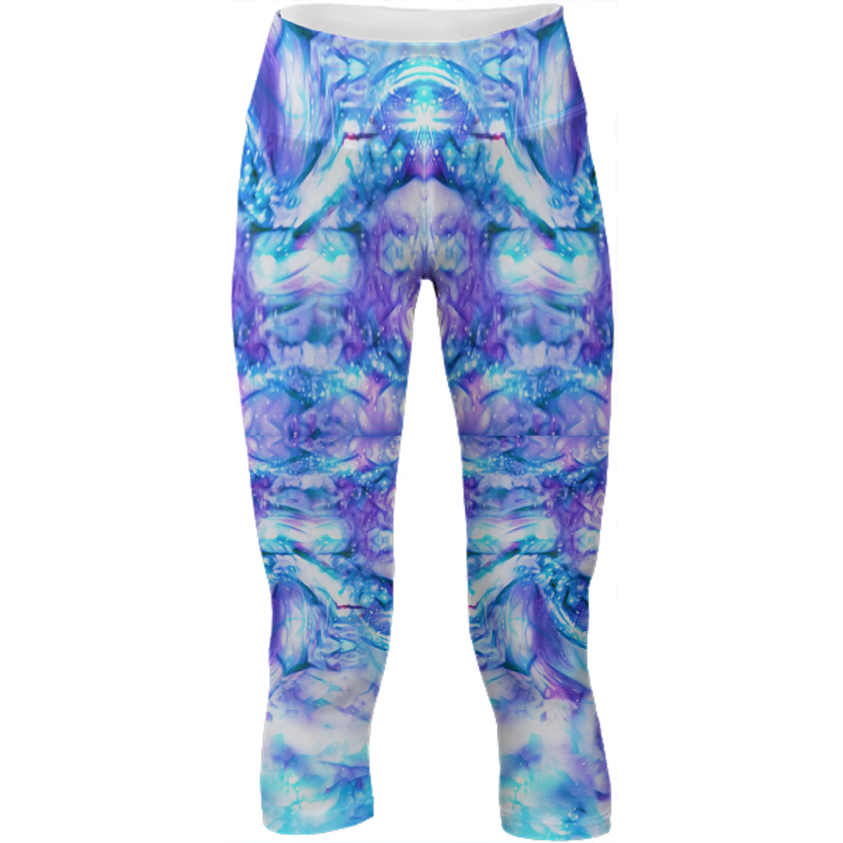 Mid calf length stretch yoga pants with an extra tall waistband for comfort and flexibility during workout.
