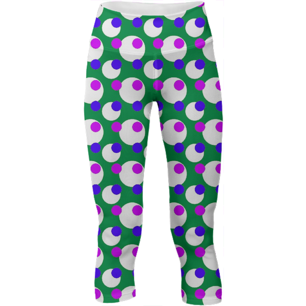 Mid calf length stretch yoga pants with an extra tall waistband for comfort and flexibility during workout.