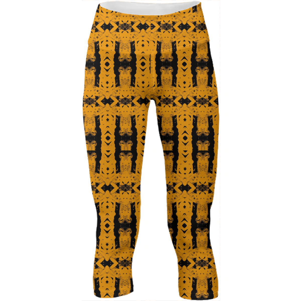 Mid calf length stretch yoga pants with an extra tall waistband for comfort and flexibility during workout.