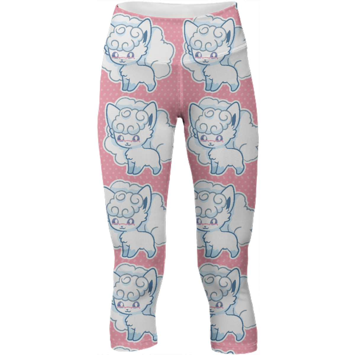 Mid calf length stretch yoga pants with an extra tall waistband for comfort and flexibility during workout.