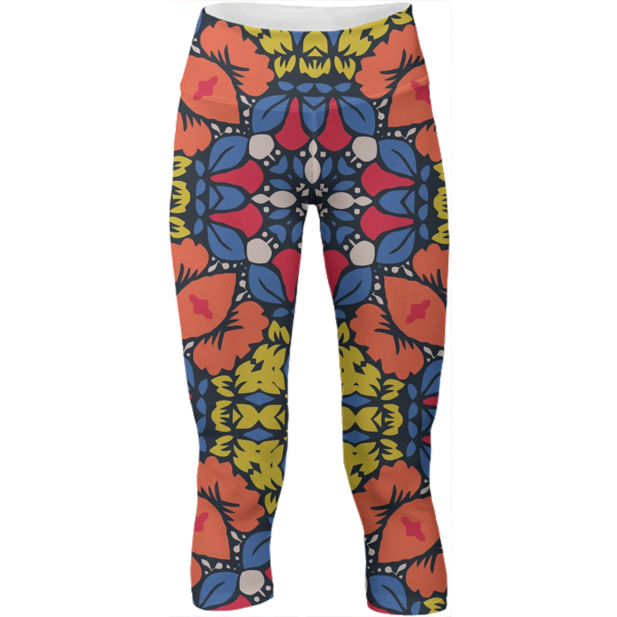Mid calf length stretch yoga pants with an extra tall waistband for comfort and flexibility during workout.