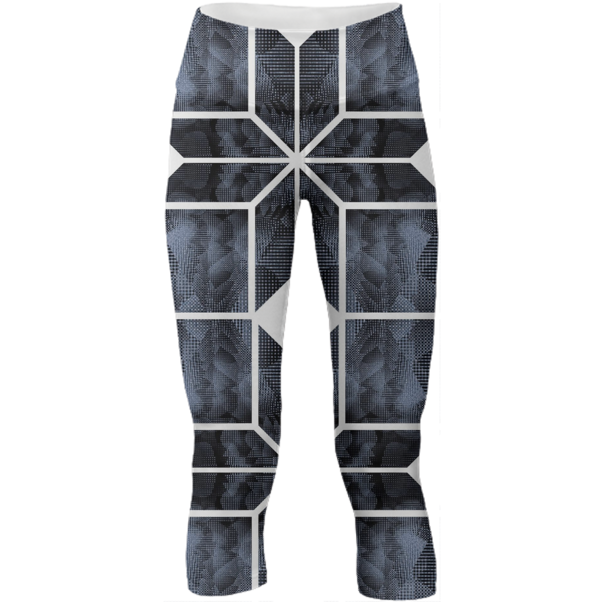 Mid calf length stretch yoga pants with an extra tall waistband for comfort and flexibility during workout.
