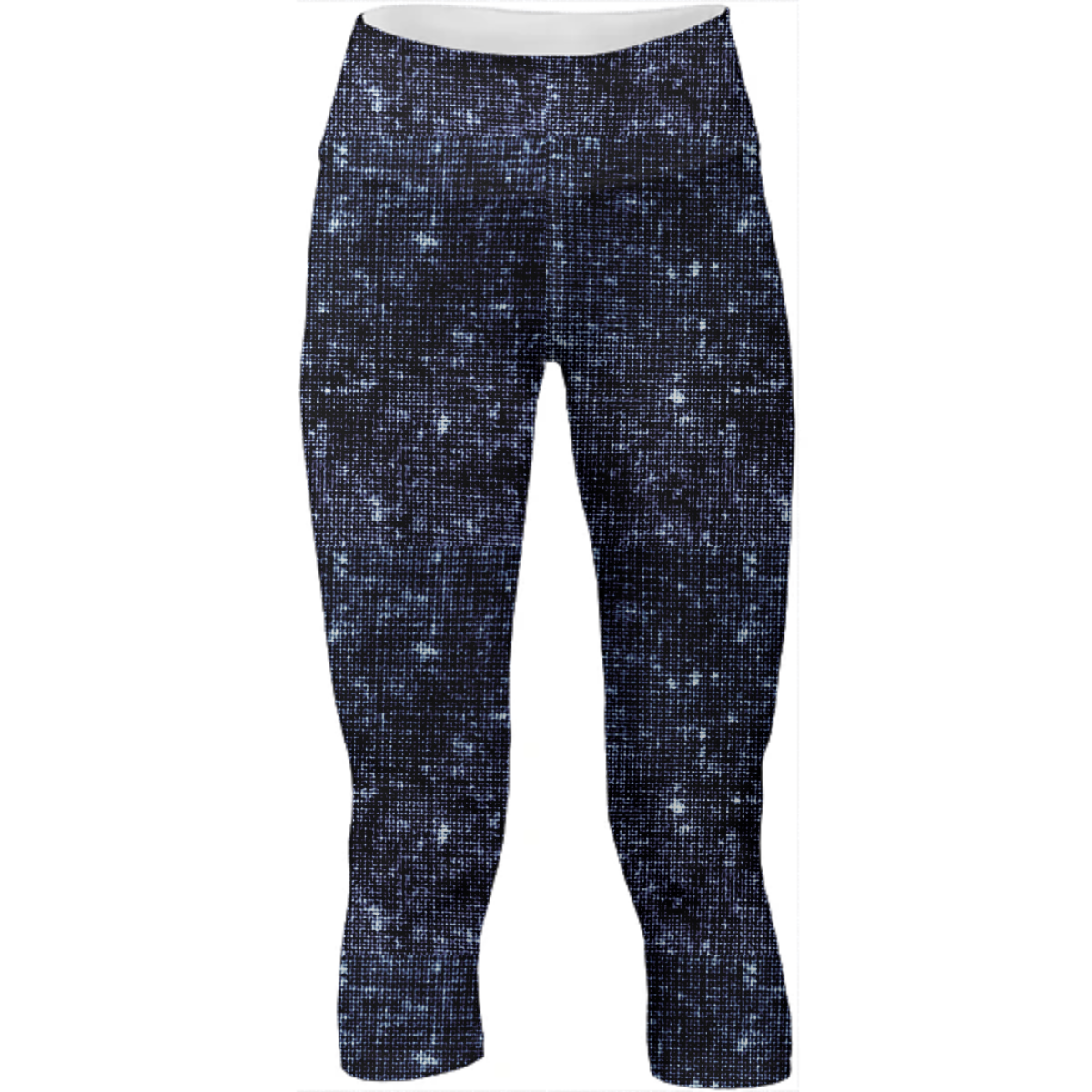 Mid calf length stretch yoga pants with an extra tall waistband for comfort and flexibility during workout.