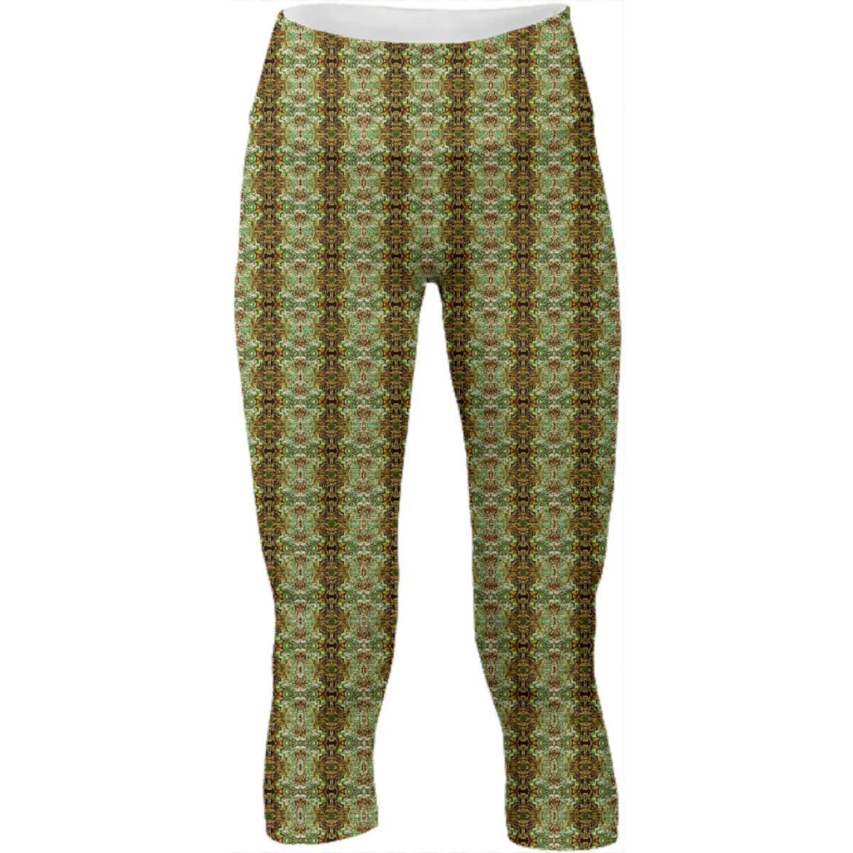 Mid calf length stretch yoga pants with an extra tall waistband for comfort and flexibility during workout.