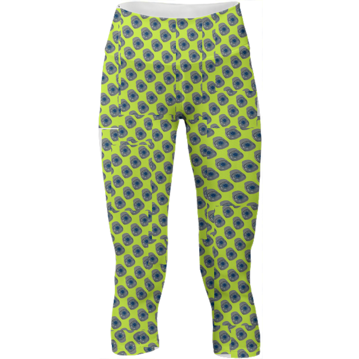 Mid calf length stretch yoga pants with an extra tall waistband for comfort and flexibility during workout.