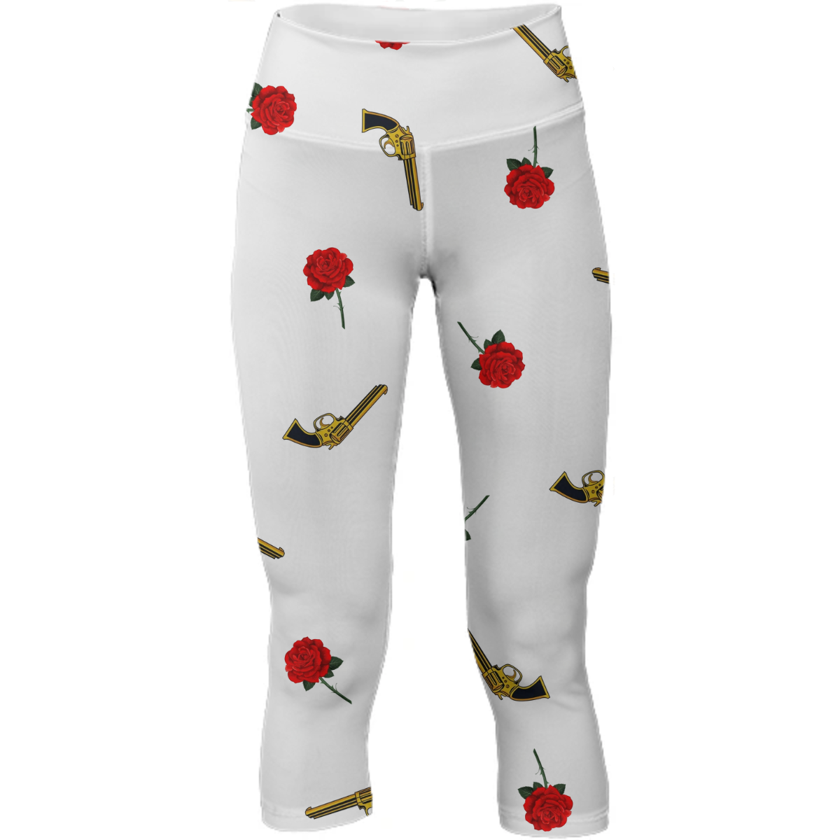 Mid calf length stretch yoga pants with an extra tall waistband for comfort and flexibility during workout.
