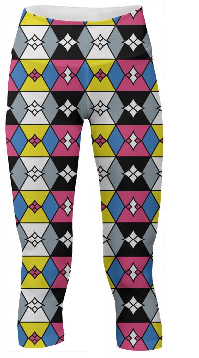 Mid calf length stretch yoga pants with an extra tall waistband for comfort and flexibility during workout.
