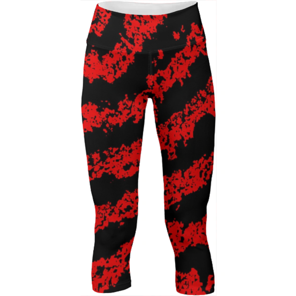 Mid calf length stretch yoga pants with an extra tall waistband for comfort and flexibility during workout.