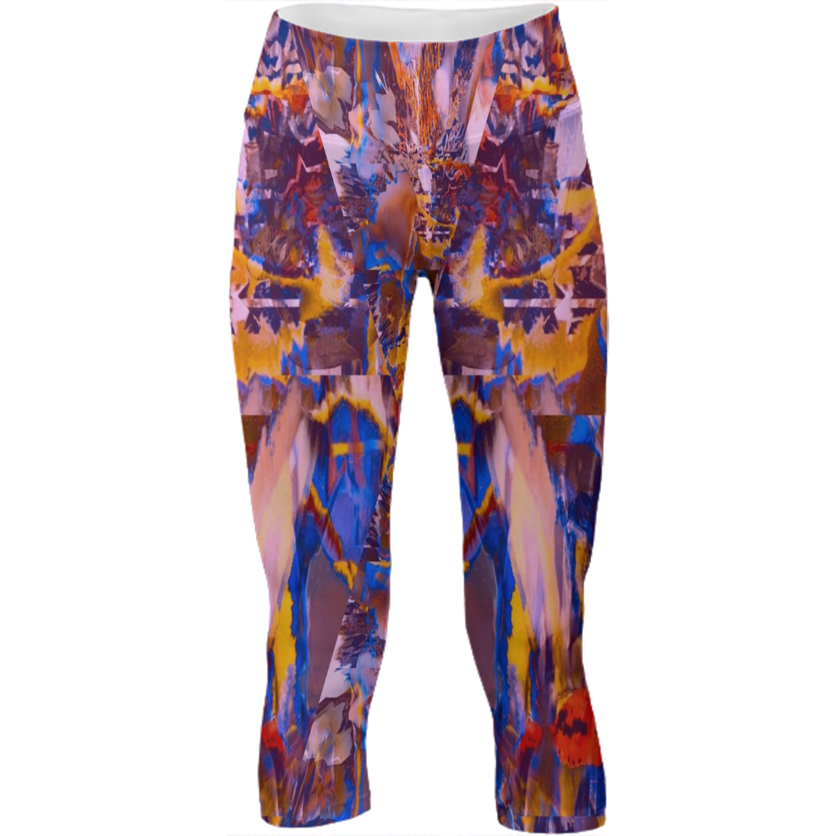 Mid calf length stretch yoga pants with an extra tall waistband for comfort and flexibility during workout.