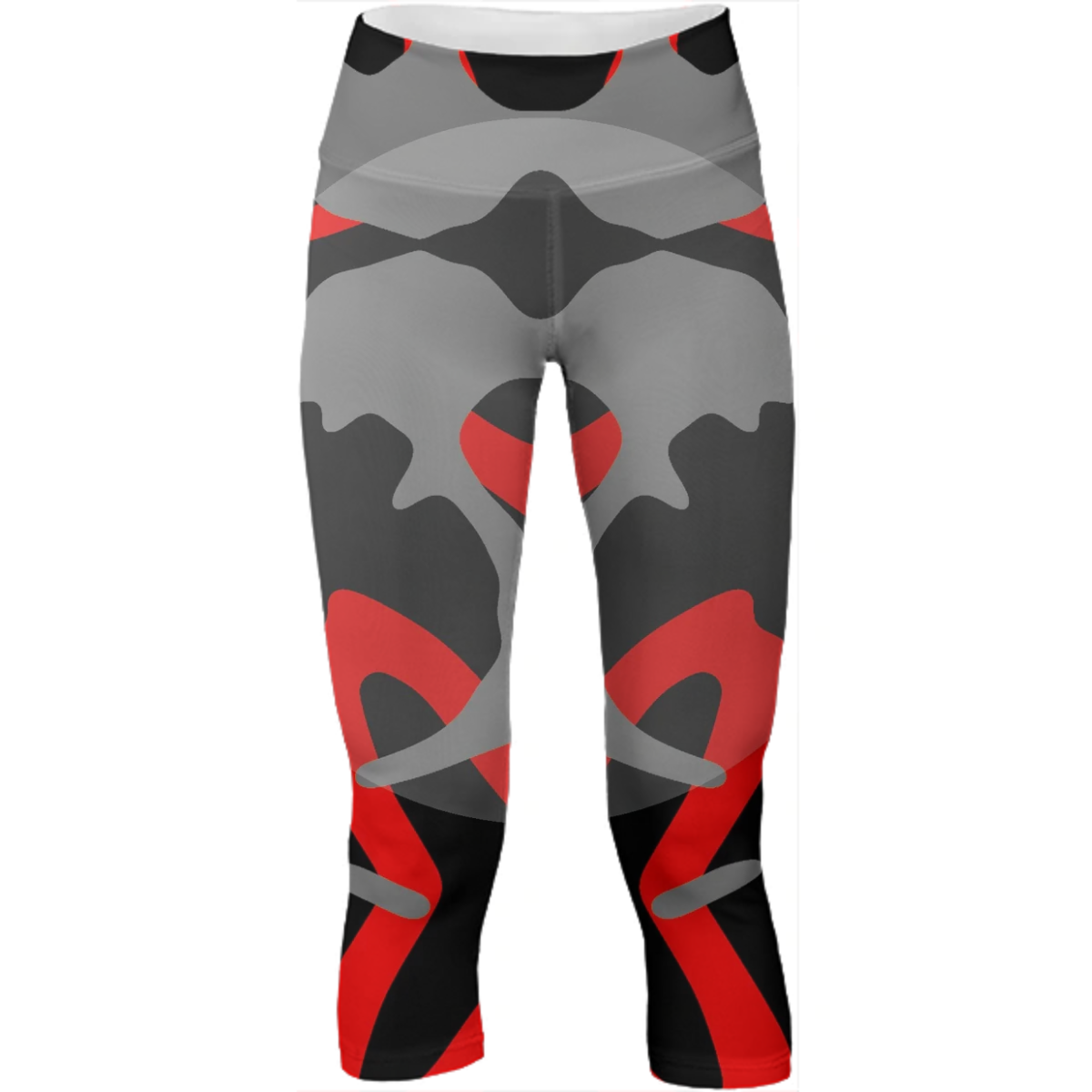 Mid calf length stretch yoga pants with an extra tall waistband for comfort and flexibility during workout.