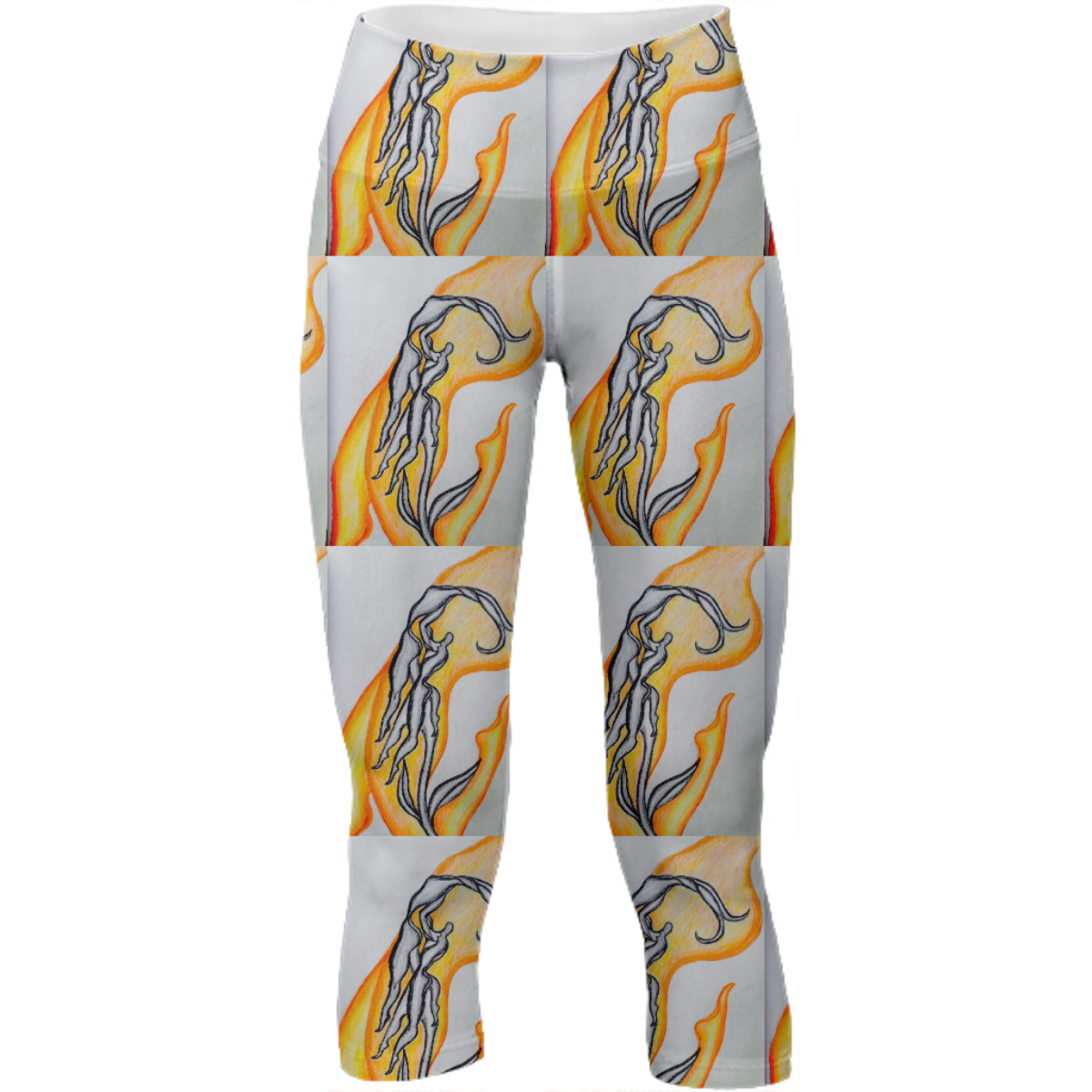 Mid calf length stretch yoga pants with an extra tall waistband for comfort and flexibility during workout.