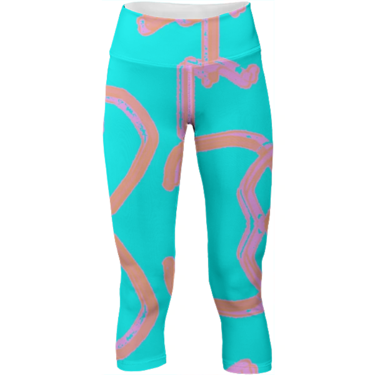 Mid calf length stretch yoga pants with an extra tall waistband for comfort and flexibility during workout.