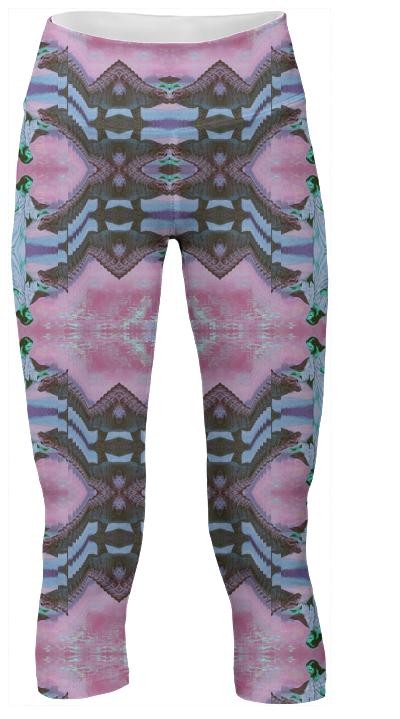 Mid calf length stretch yoga pants with an extra tall waistband for comfort and flexibility during workout.