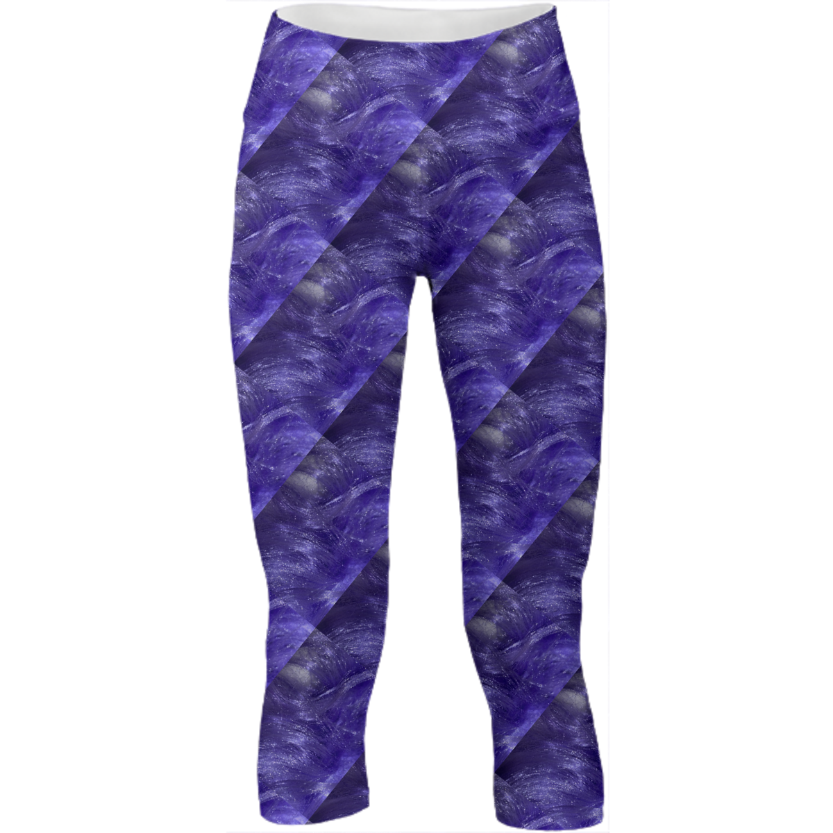 Mid calf length stretch yoga pants with an extra tall waistband for comfort and flexibility during workout.