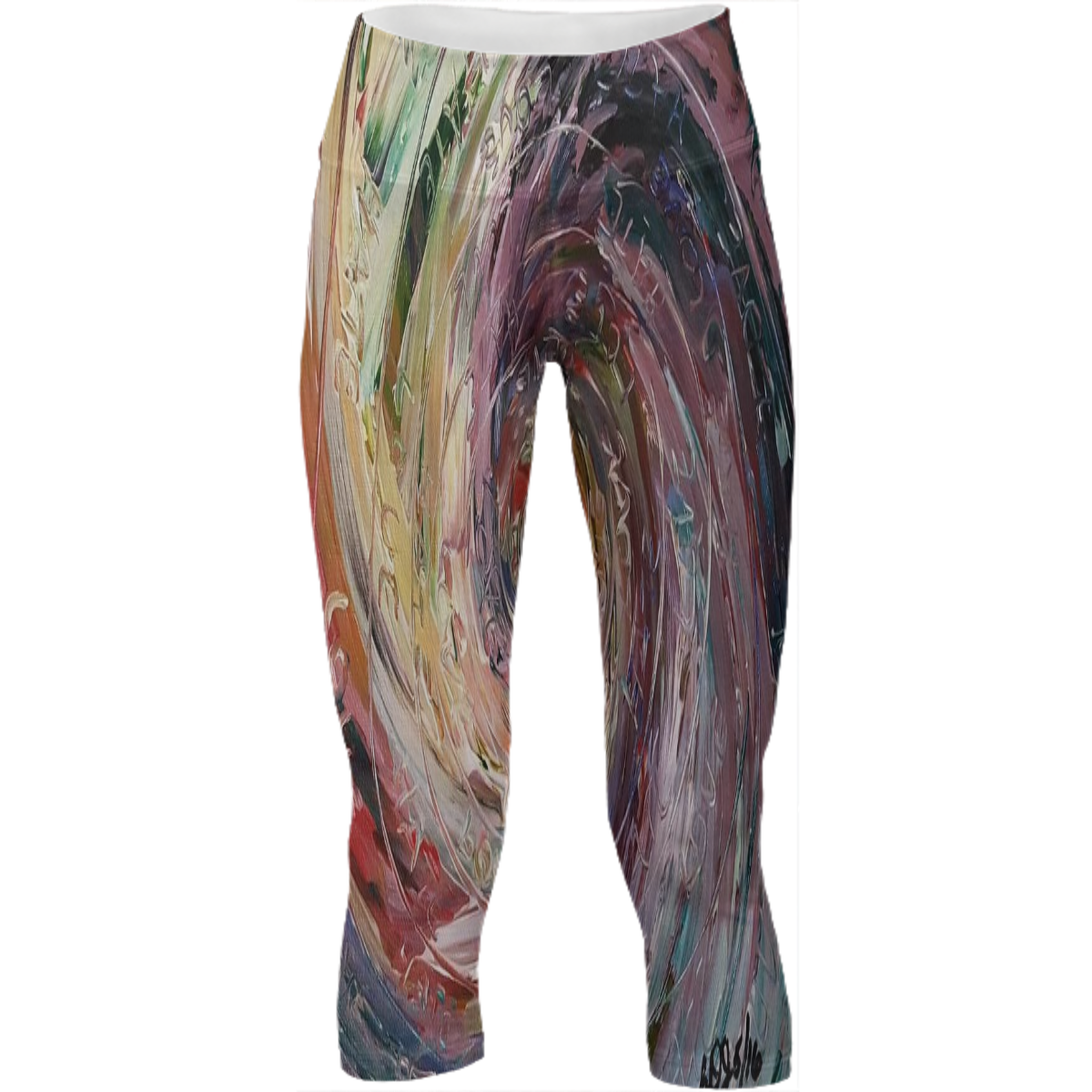 Mid calf length stretch yoga pants with an extra tall waistband for comfort and flexibility during workout.