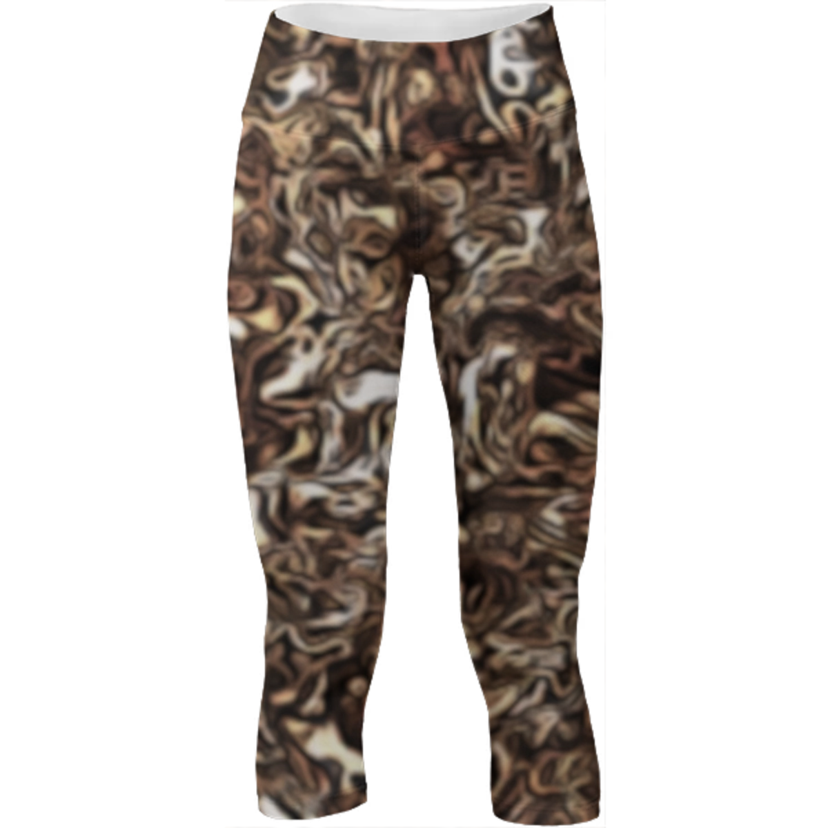 Mid calf length stretch yoga pants with an extra tall waistband for comfort and flexibility during workout.