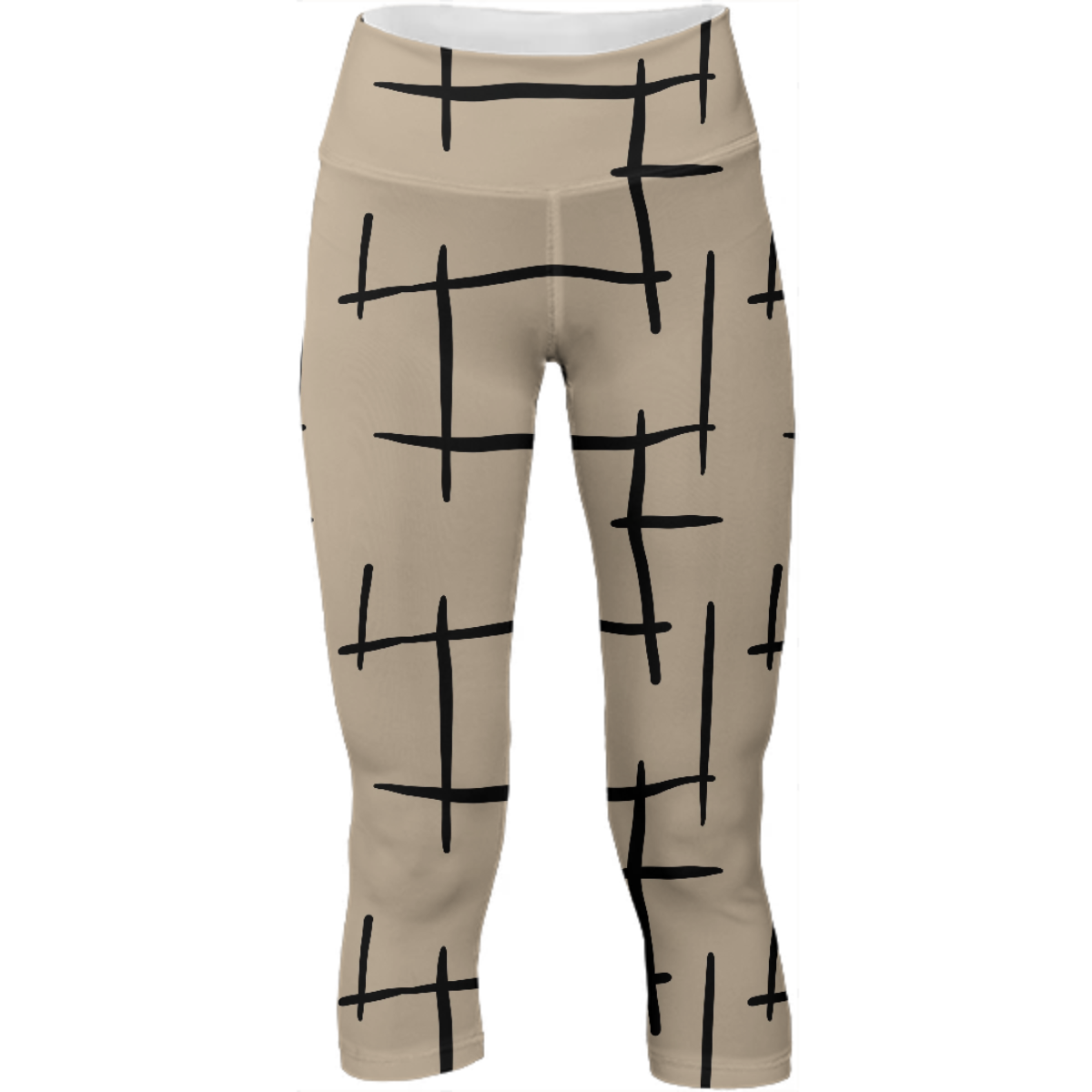 Mid calf length stretch yoga pants with an extra tall waistband for comfort and flexibility during workout.