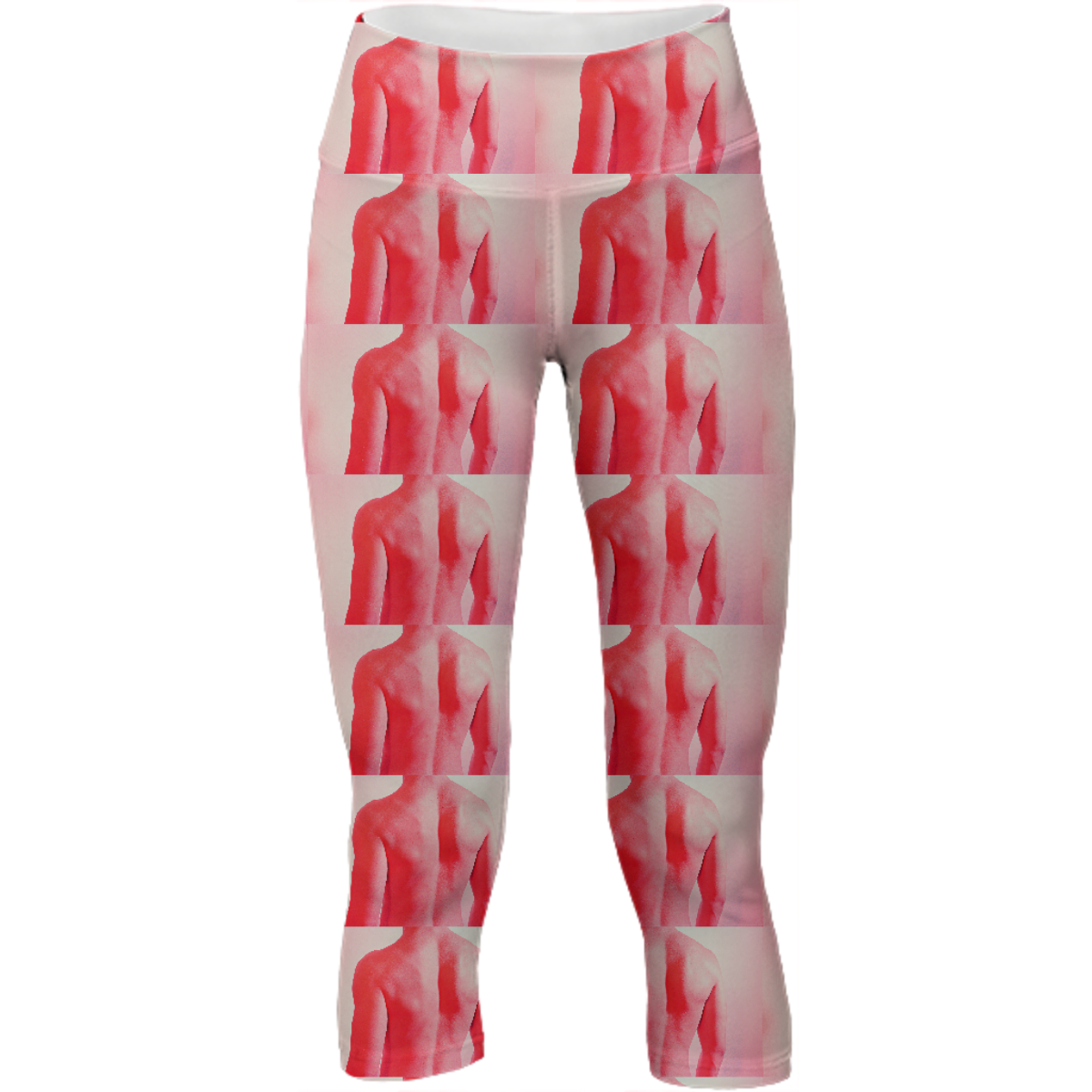 Mid calf length stretch yoga pants with an extra tall waistband for comfort and flexibility during workout.