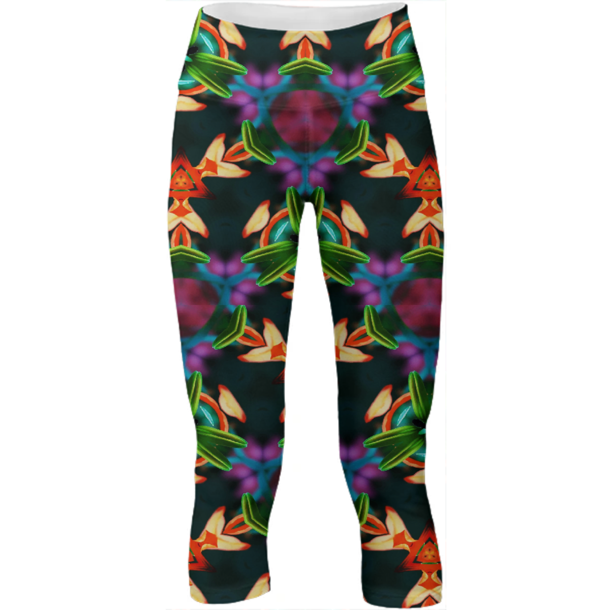 Mid calf length stretch yoga pants with an extra tall waistband for comfort and flexibility during workout.