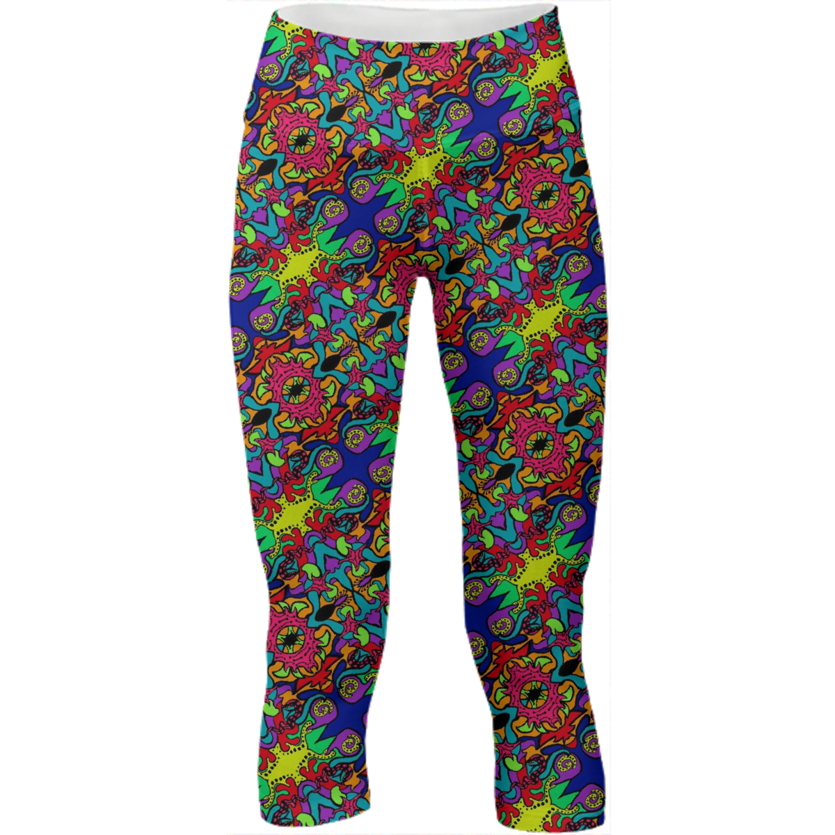 Mid calf length stretch yoga pants with an extra tall waistband for comfort and flexibility during workout.
