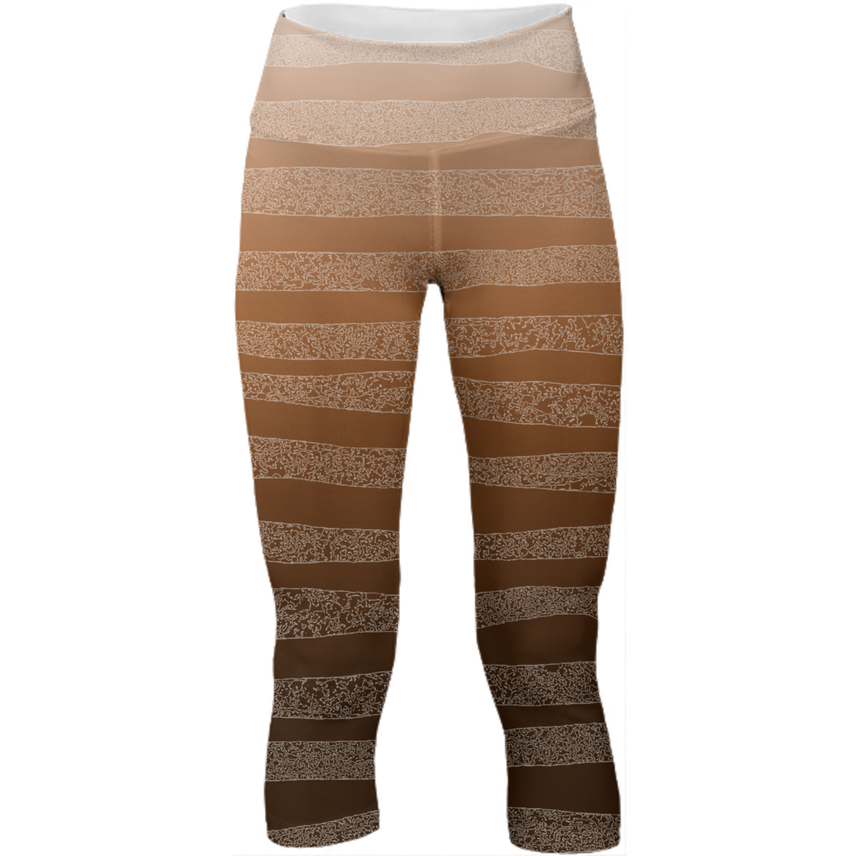 Mid calf length stretch yoga pants with an extra tall waistband for comfort and flexibility during workout.