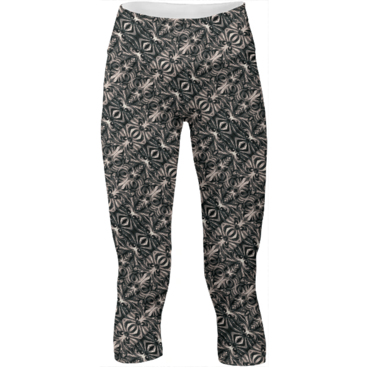 Mid calf length stretch yoga pants with an extra tall waistband for comfort and flexibility during workout.